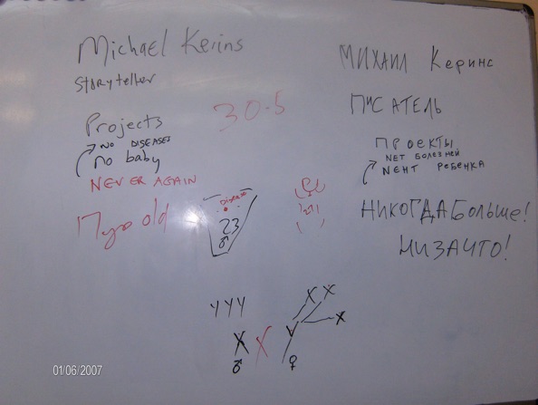 Michael along with interpreters Albina, (twice) Mitya (thrice), Alena and Olga have all worked with the Love’s Bridge Team on a series of talks with the team leaders in Perm - Including Lisa, Hamish and Hannah-Louise. Hamish and Hannah-Louise have now left Russia and returned to the U.K. The new project manager is Raphael Several of the staff members have brought their own children in to the centre so that they may listen and learn some practical advice. 2010 saw a set of new faces. Love’s Bridge team leader Rafael introduced Dominic Kerins and a new interpreter Nicholay Delidov to the street teens and they were able to deliver the sexual health lecture and distribute cash condoms and clothes. Practical forthright and most worthwhile comments were fed back from the street teens.